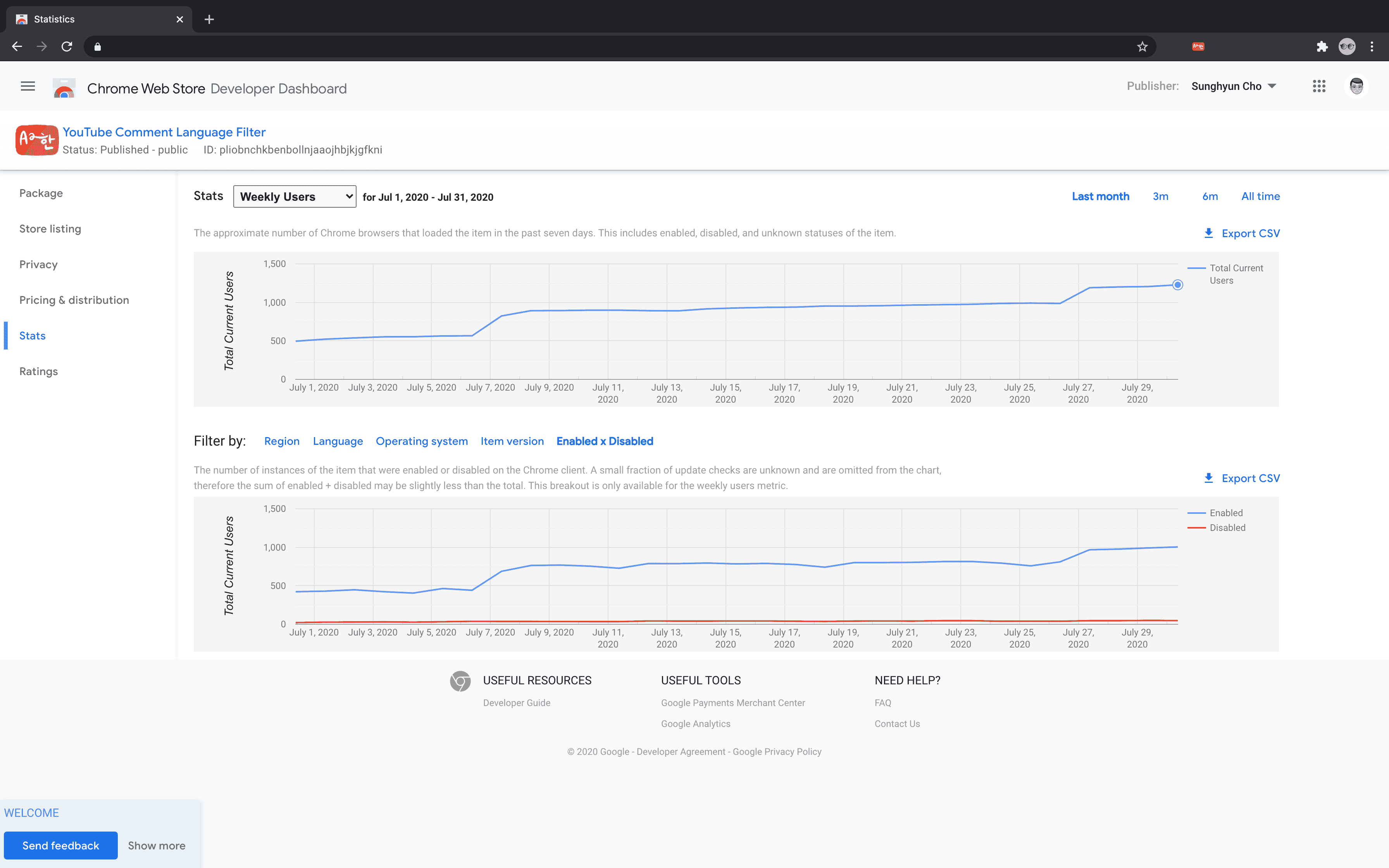 YouTube Comment Language Filter의 주간 사용자가 1,000명을 돌파했다. 사용자 분들께 조금이나마 감사한 마음을 공유하고자 약간의 TMI를 적어볼 것이다.