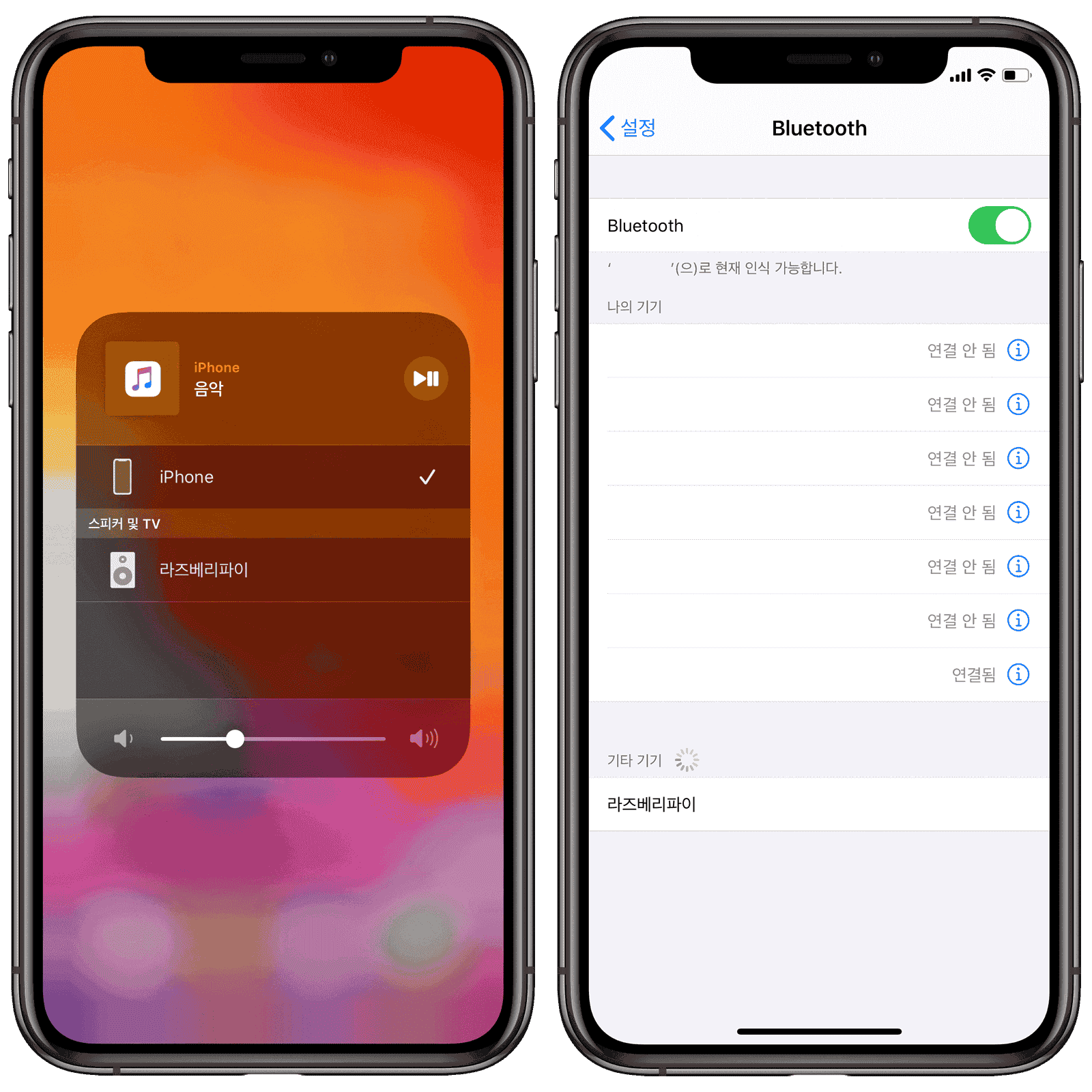 AirPlay와 블루투스 모두 사용할 수 있다.