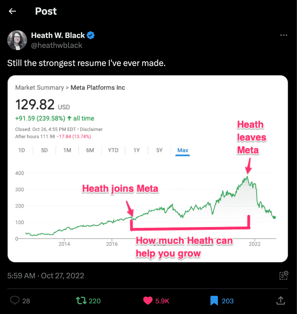 Heath Resume Still the strongest resume I've ever made. Original Post Link โ Heath W. Black (@heathwblack) October 26, 2022