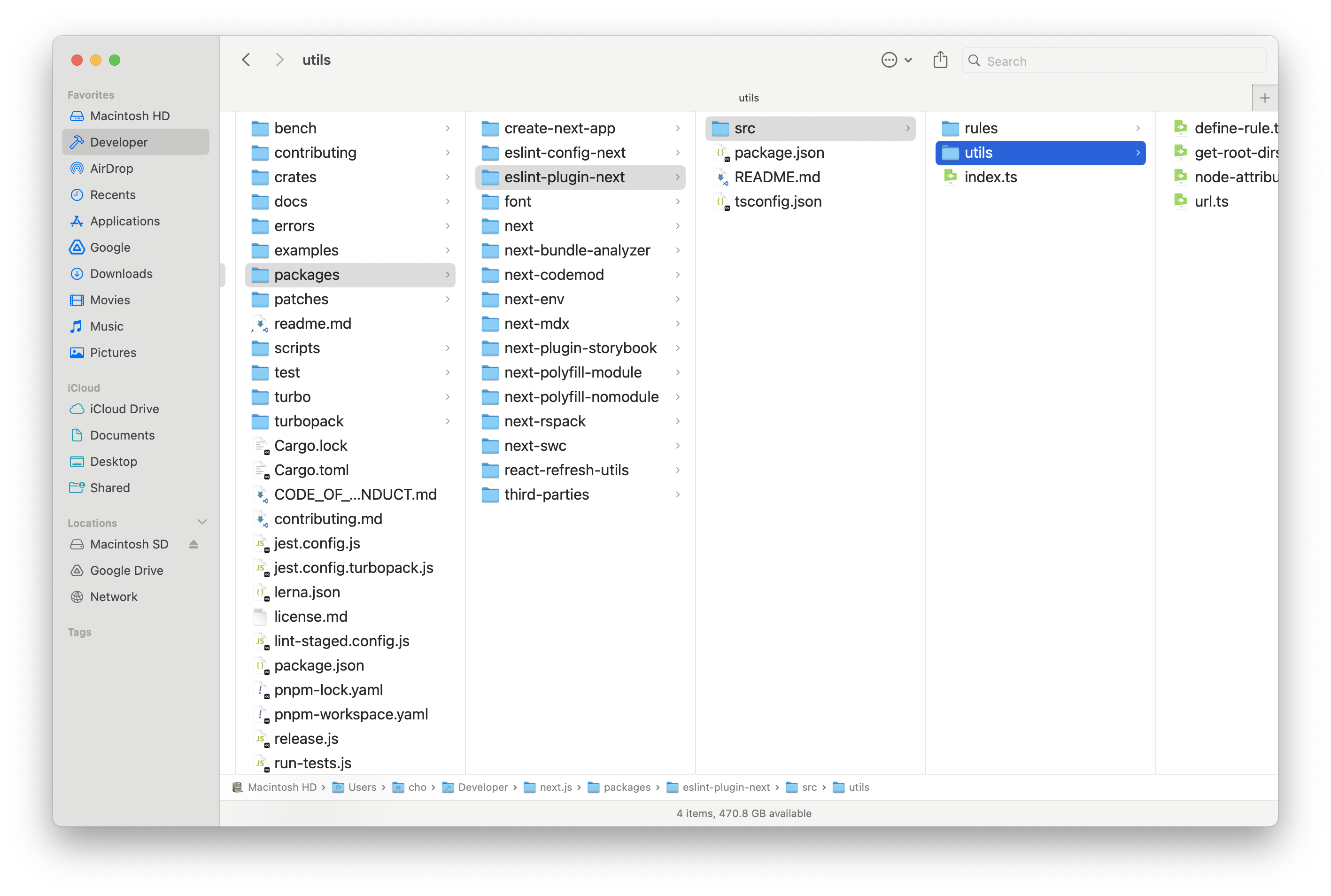 Miller columns refer to multiple columns stretching horizontally in directories with mixed hierarchies.