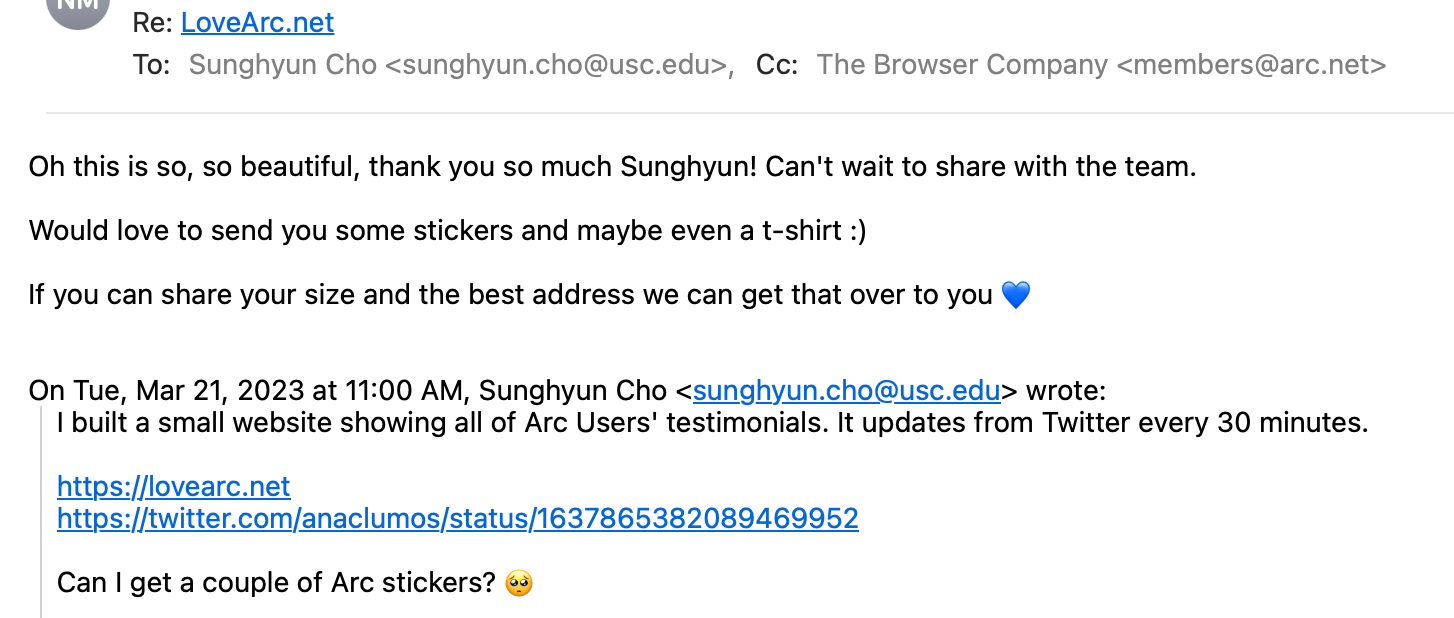 @joshm @arcinternet @browsercompany Just built an Arc fan page... A ๐