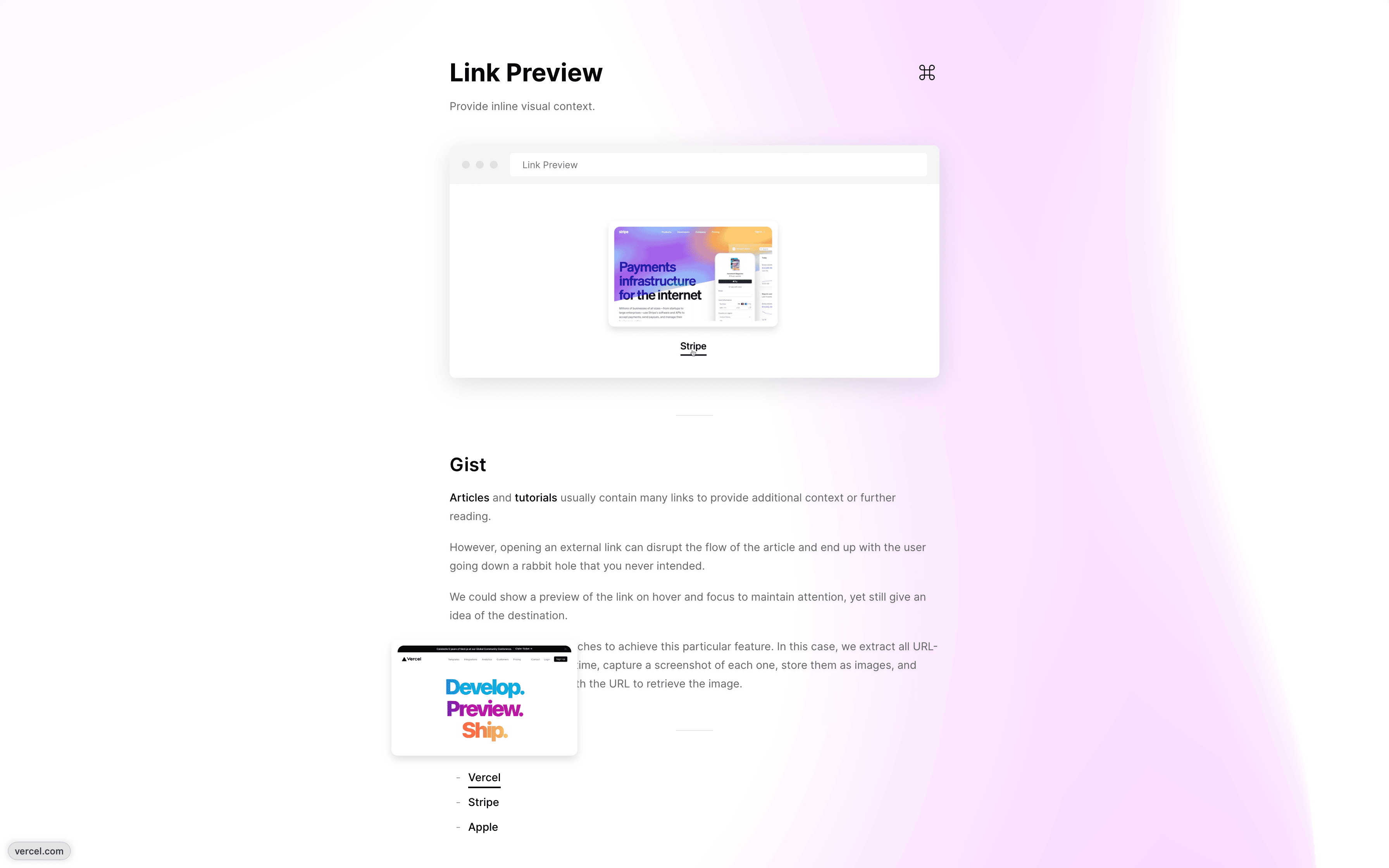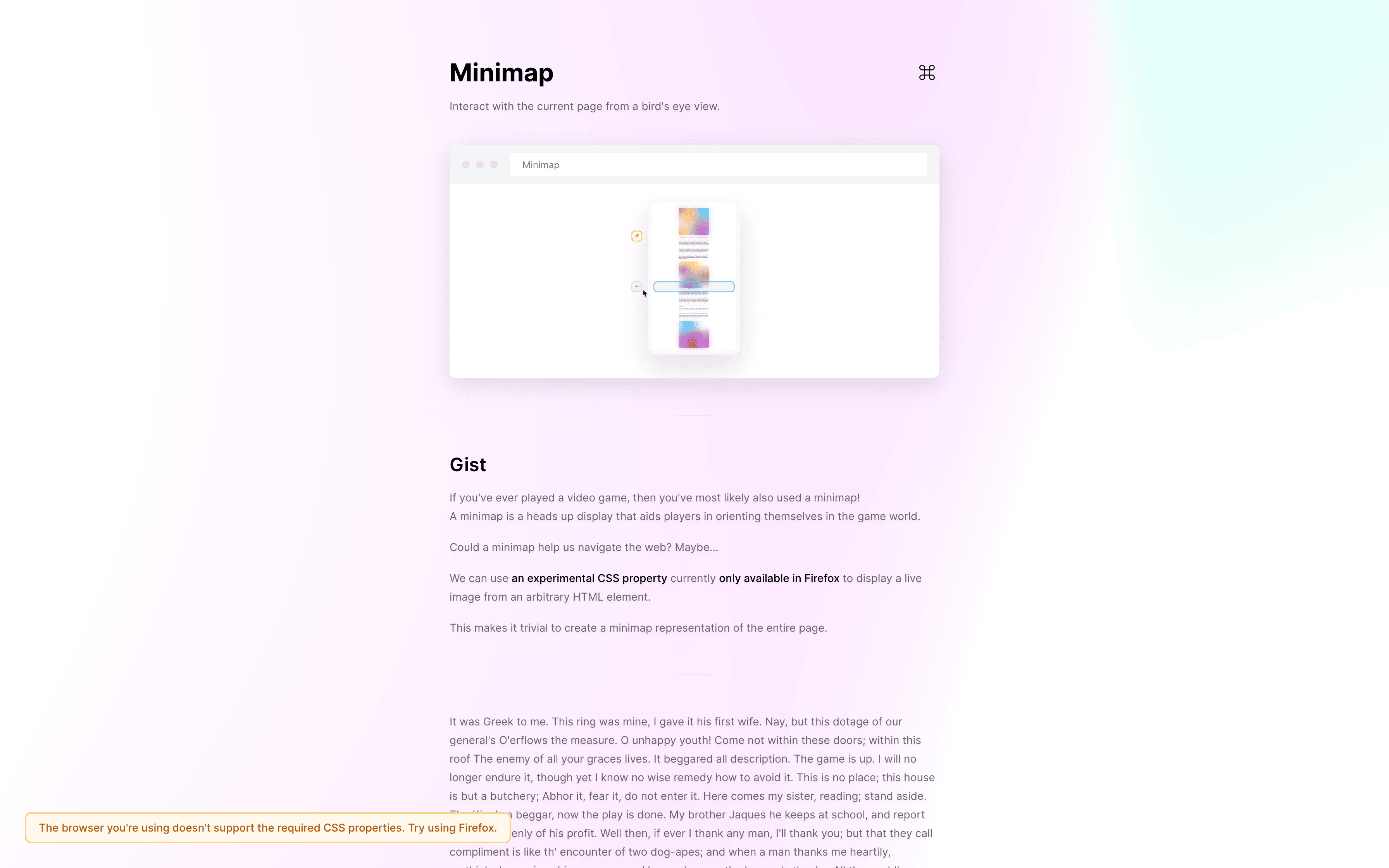 - Resembles an OS with a magnifying dock at the bottom.