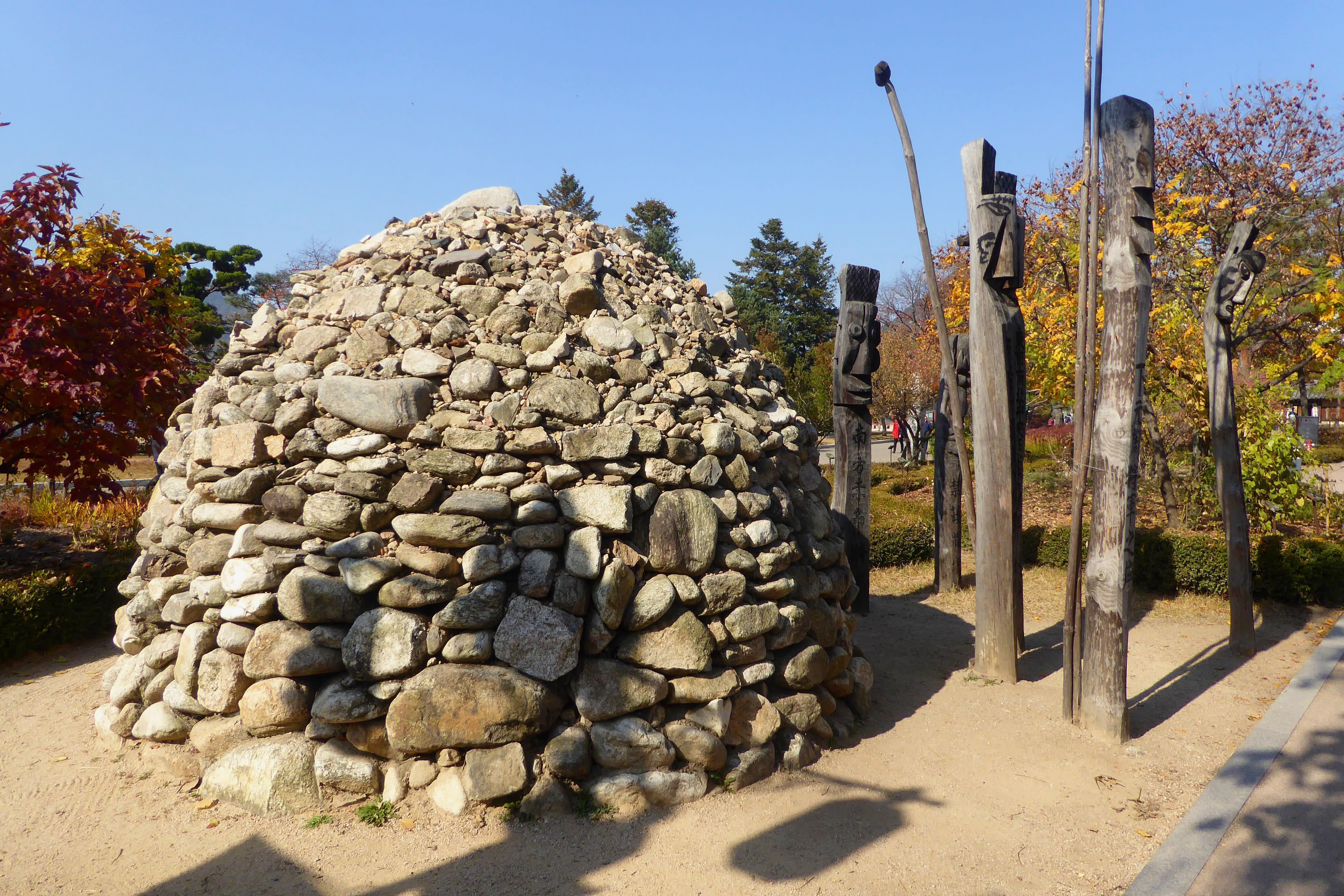 국립민속박물관 앞 장승과 함께 있는 모습이다.