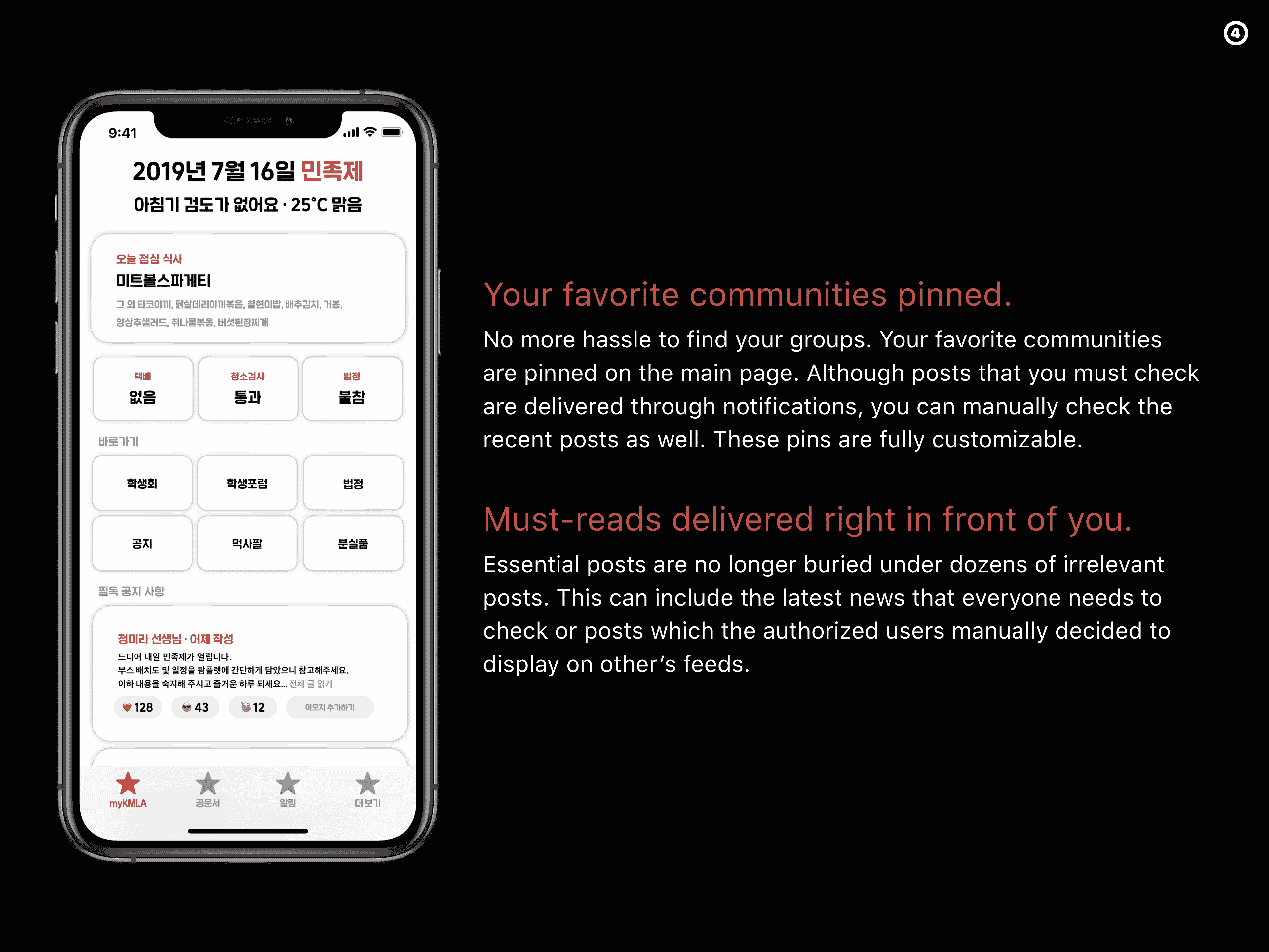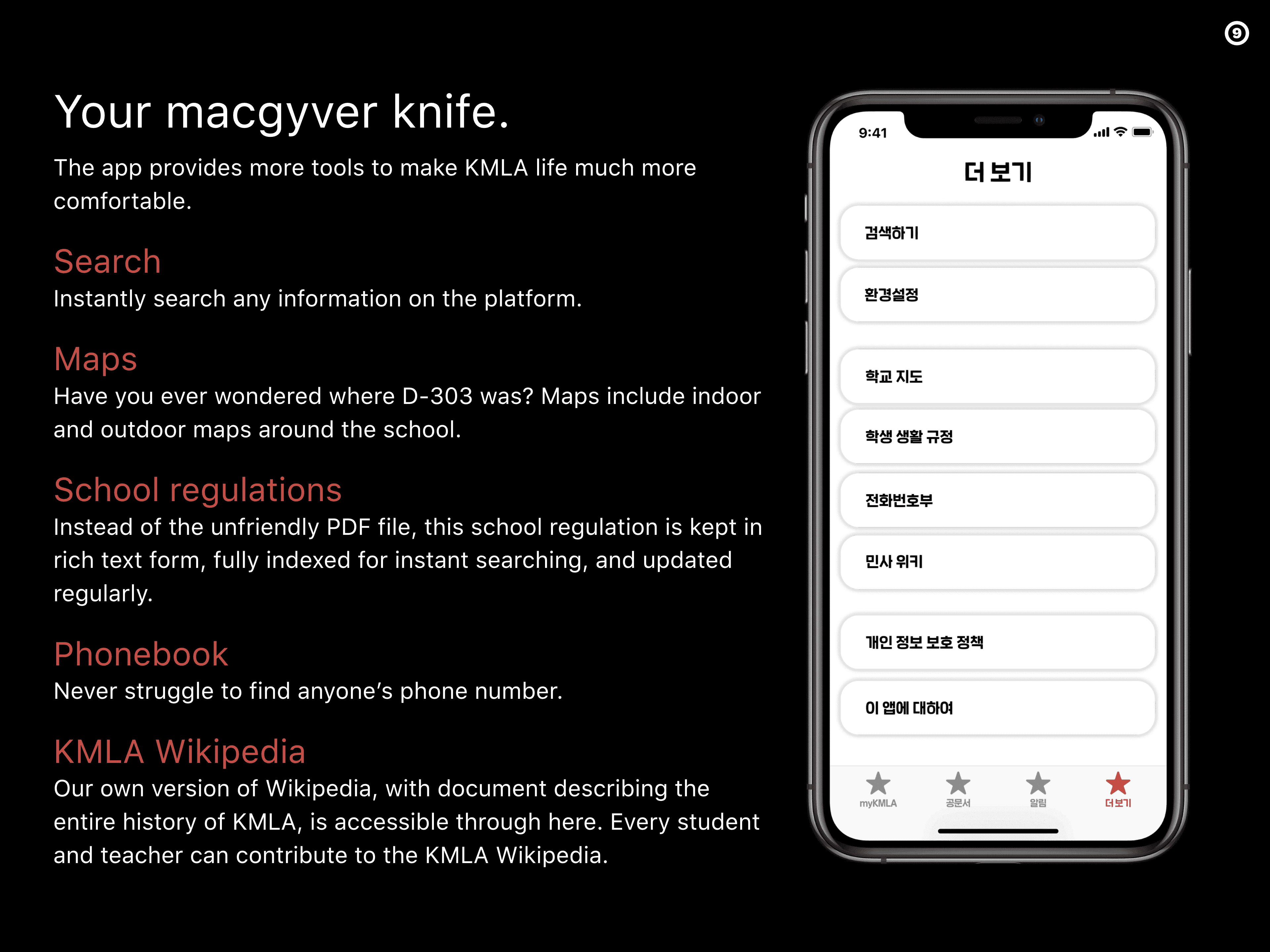 The app provides more tools to make KMLA life much more comfortable.
