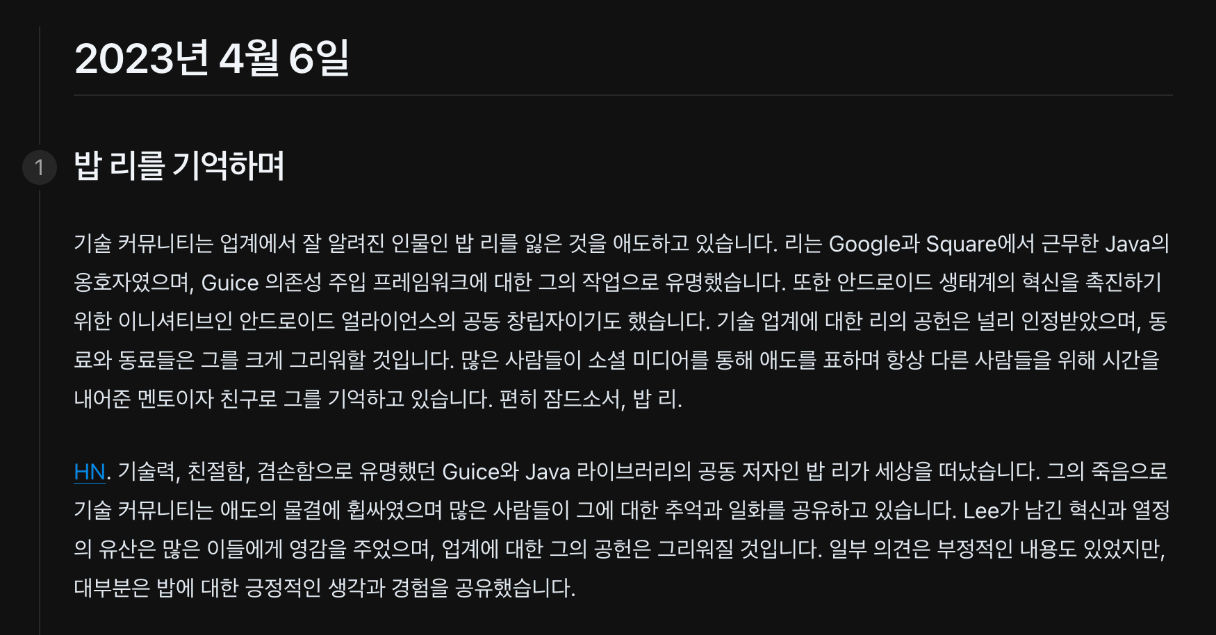 프롬프트를 조금 개선했더니 요약 품질이 많이 좋아졌다. 오늘거 좀 마음에 든다.