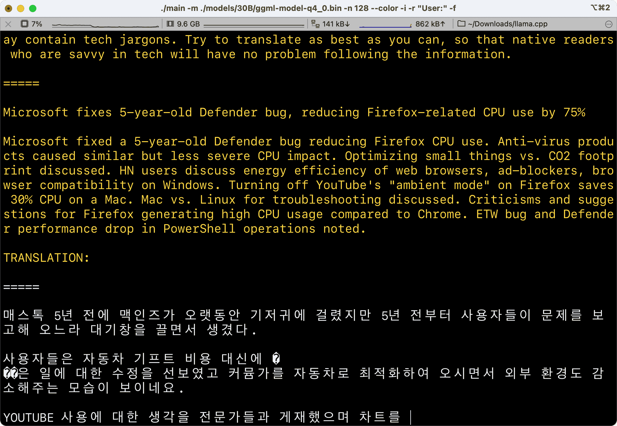 LLaMa의 번역 성능을 확인해보았는데 아직 GPT 2 혹은 3 정도 수준에 머물러 있다.