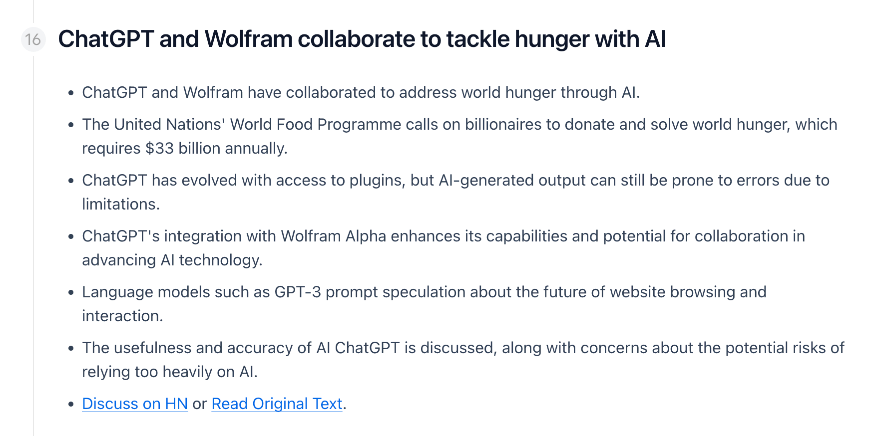 I subscribed for a bit and appreciated the detail, but I felt the descriptions were lengthy. I like this AI newsletter: pretty easy-to-follow section, and it feels super readable. Understanding whether you are trying to source lesser-known information, summarize long-form, or do both might be helpful.