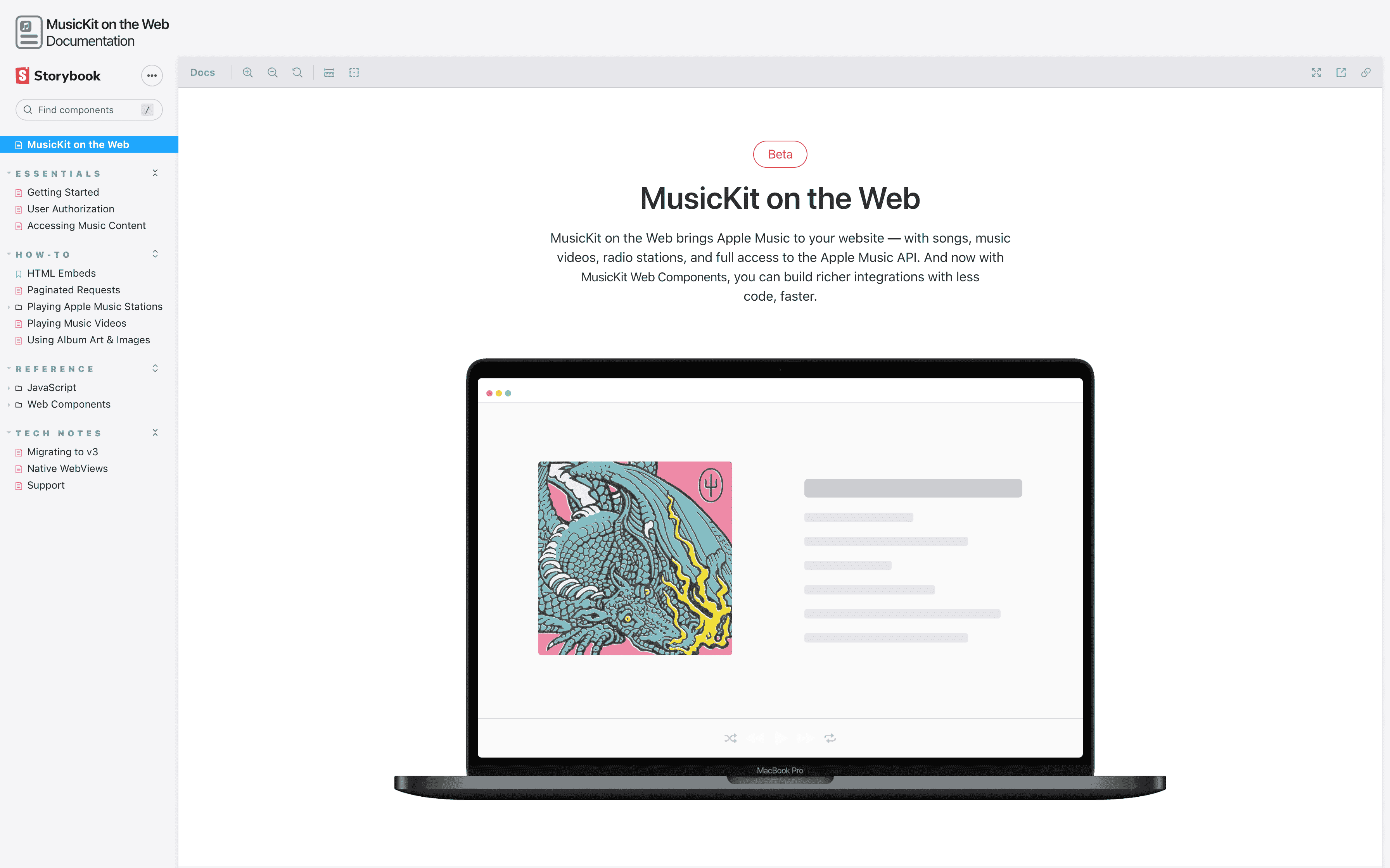 MusicKit on the Web. Is Apple using Storybook? Based on Apple's track record, this MUST be an Alpha of Alpha.