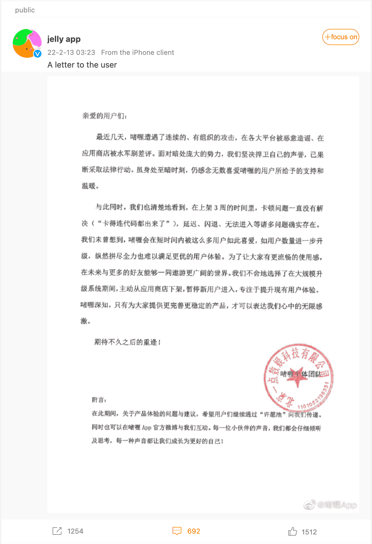 요약: Zheli는 지속적이고 조직적인 공격에 직면한 새로운 앱으로, 루머가 확산되고 다양한 플랫폼에 부정적인 리뷰가 게시되고 있습니다. 그 회사는 명성을 지키기 위해 법적 조치를 취했습니다. 그러나 앱에는 동결, 충돌 및 지연과 같은 기술적 문제도 있지만 해결되지 않았습니다. 사용자 경험 개선을 위해 대규모 시스템 업그레이드를 위해 앱스토어에서 앱을 제거하고 기존 문제를 해결하는 데 주력하기로 했습니다. 그 회사는 그들의 질문과 제안 채널을 통해 그리고 그들의 공식 웨이보 계정을 통해 사용자들로부터 듣기를 희망하고 있습니다.