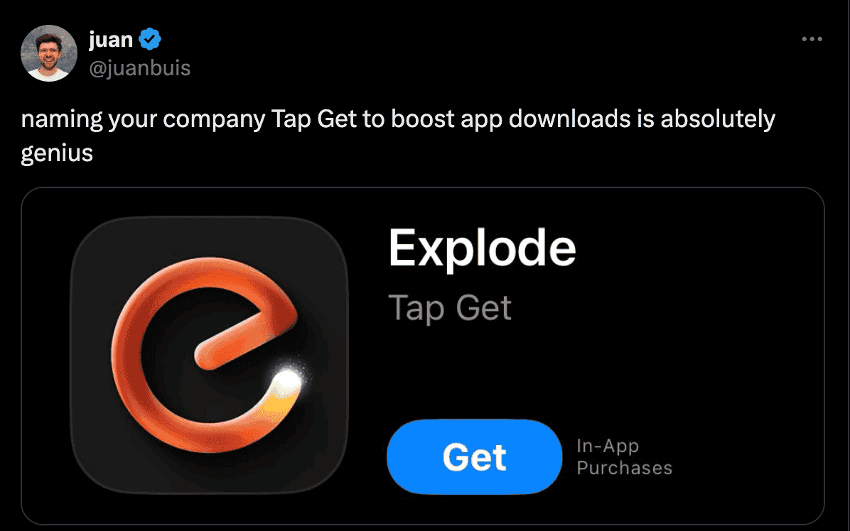 naming your company Tap Get to boost app downloads is absolutely genius https://t.co/5uzefnmbwX pic.twitter.com/kLCU3FACpE