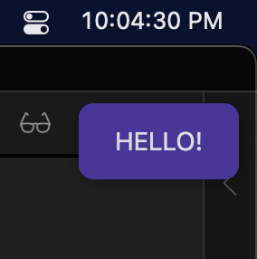 export default class CustomPlugin extends Plugin { settings: CustomSettings async onload(): Promise<void> { await this.loadSettings() this.createRibbon() } async loadSettings() { this.settings = Object.assign({}, DEFAULT_SETTINGS, await this.loadData()) } createRibbon(): HTMLElement { const ribbon = this.addRibbonIcon('calendar-with-checkmark', 'Review Daily Notes', (evt: MouseEvent) => { new Notice('HELLO!') }) return ribbon }}왼쪽 리본 버튼을 누르면 다음과 같이 옵시디언 안내 문구가 나타난다.