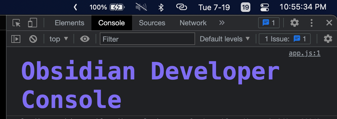 /** * @public */export class TFile extends TAbstractFile { /** * @public */ stat: FileStats /** * @public */ basename: string /** * @public */ extension: string}참고로 옵시디언은 Chromium이기 때문에 다음과 같이 Dev Console을 열 수 있다.