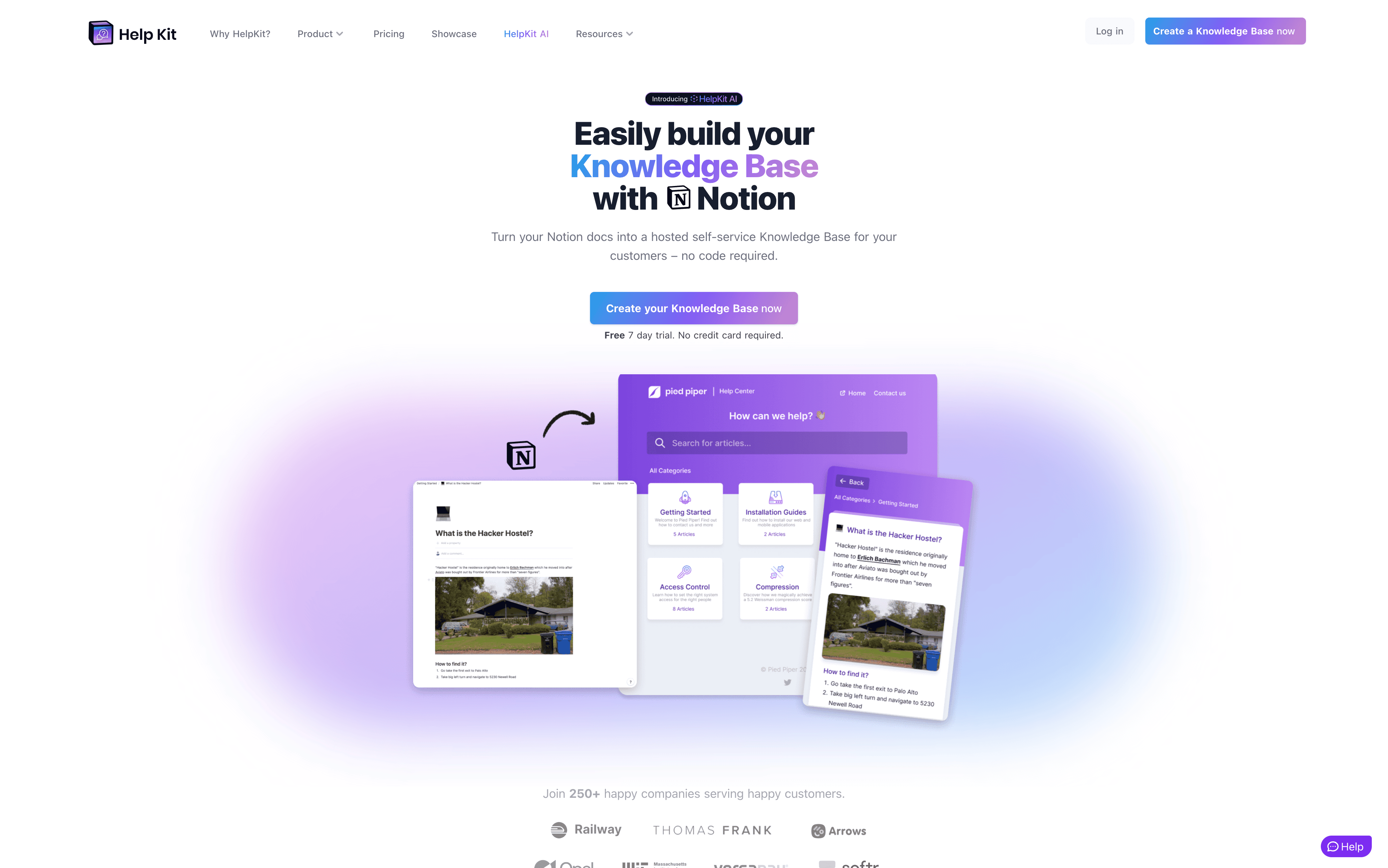 Knowledge BaseHelpKit - Build your Knowledge Base with the ease of Notion Mintlify - The modern standard for documentation