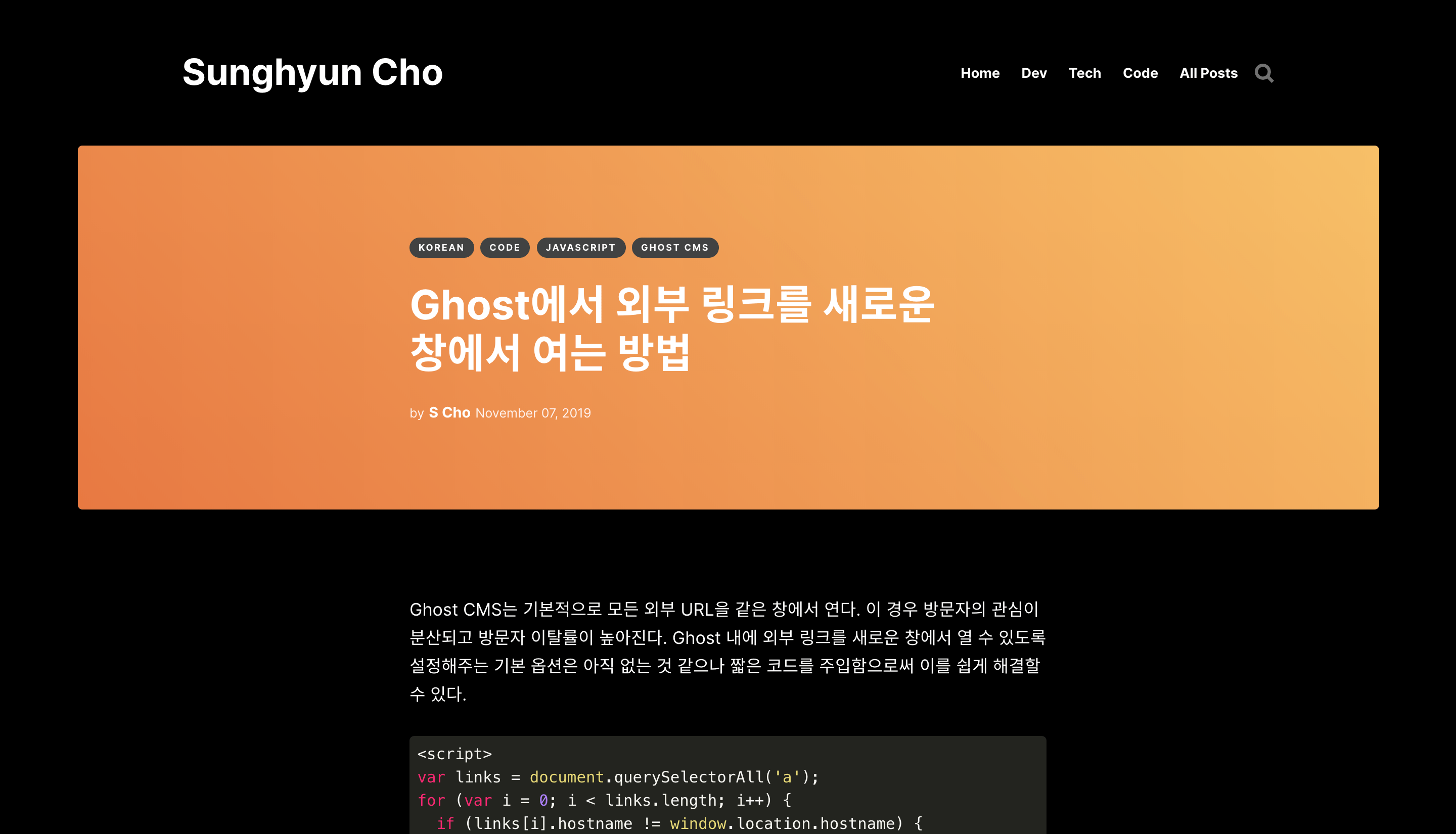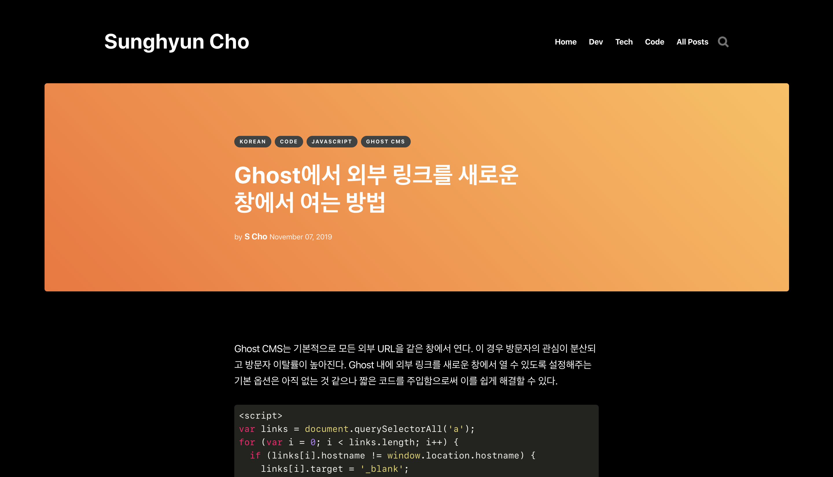 font-family: "SF Mono", "Consolas", "Menlo", monospace;코드 서체도 마찬가지로 San Francisco 계열의 SF Mono를 사용하도록 지정했다. WWDC16에서 첫 공개된 SF Mono는 여전히 Mac 터미널과 Xcode의 기본 코드 서체로 사용된다. 그 외의 경우에는 큰 차이가 없을 것 같아 보편적인 Consolas, Menlo를 지정했다.