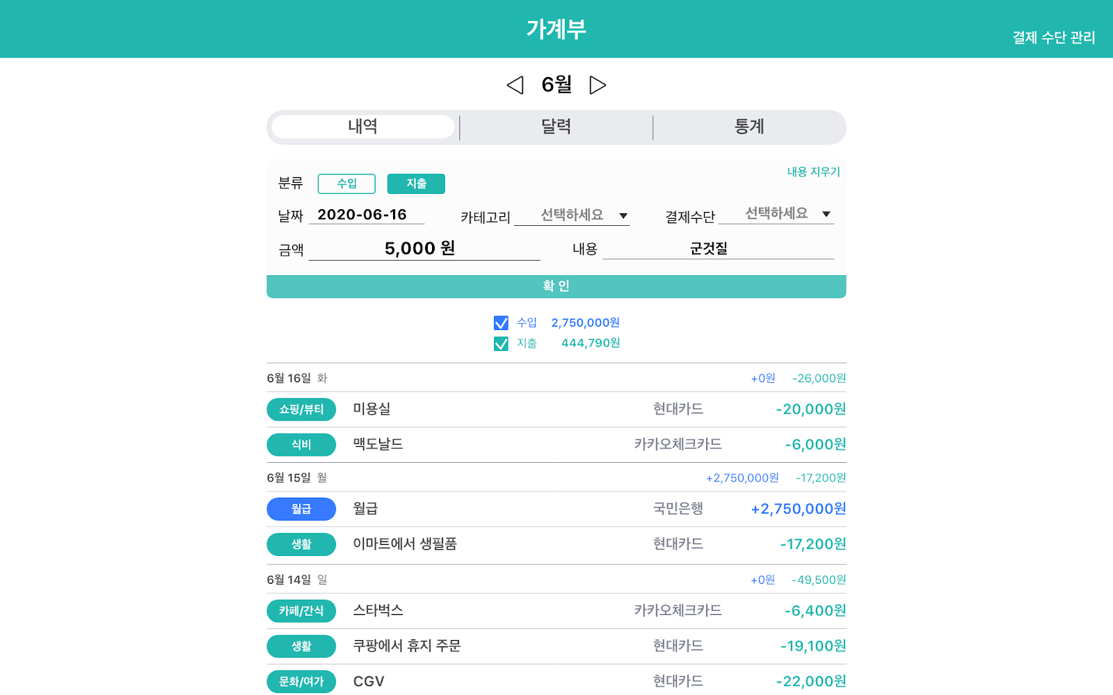 - 가계부 앱을 직접 구현하는 뱅크샐러드 프로젝트 (기간 2주)