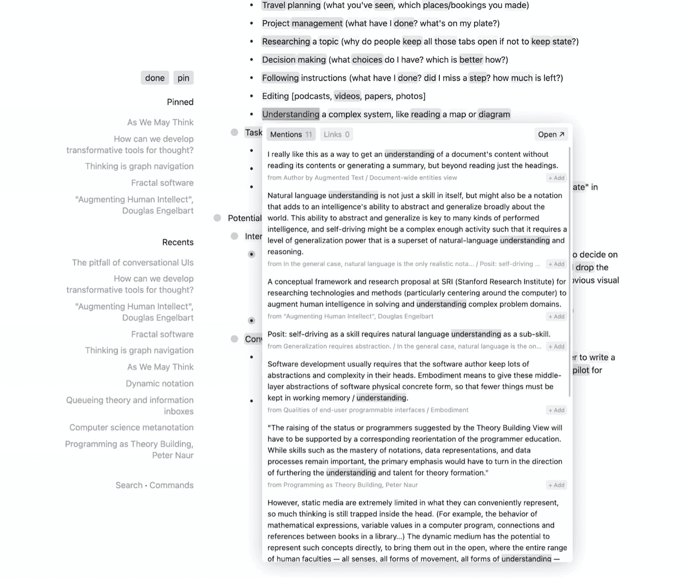 Thesephist Work Case StudySearch in a Latent Space Tweet The "Length" dimension of Generative Intelligence Notation: Text-based Tools for Thought that automatically links CoStructure: Data Capturers tool that automatically highlights Monocle: Search Engine Indexing Your Life