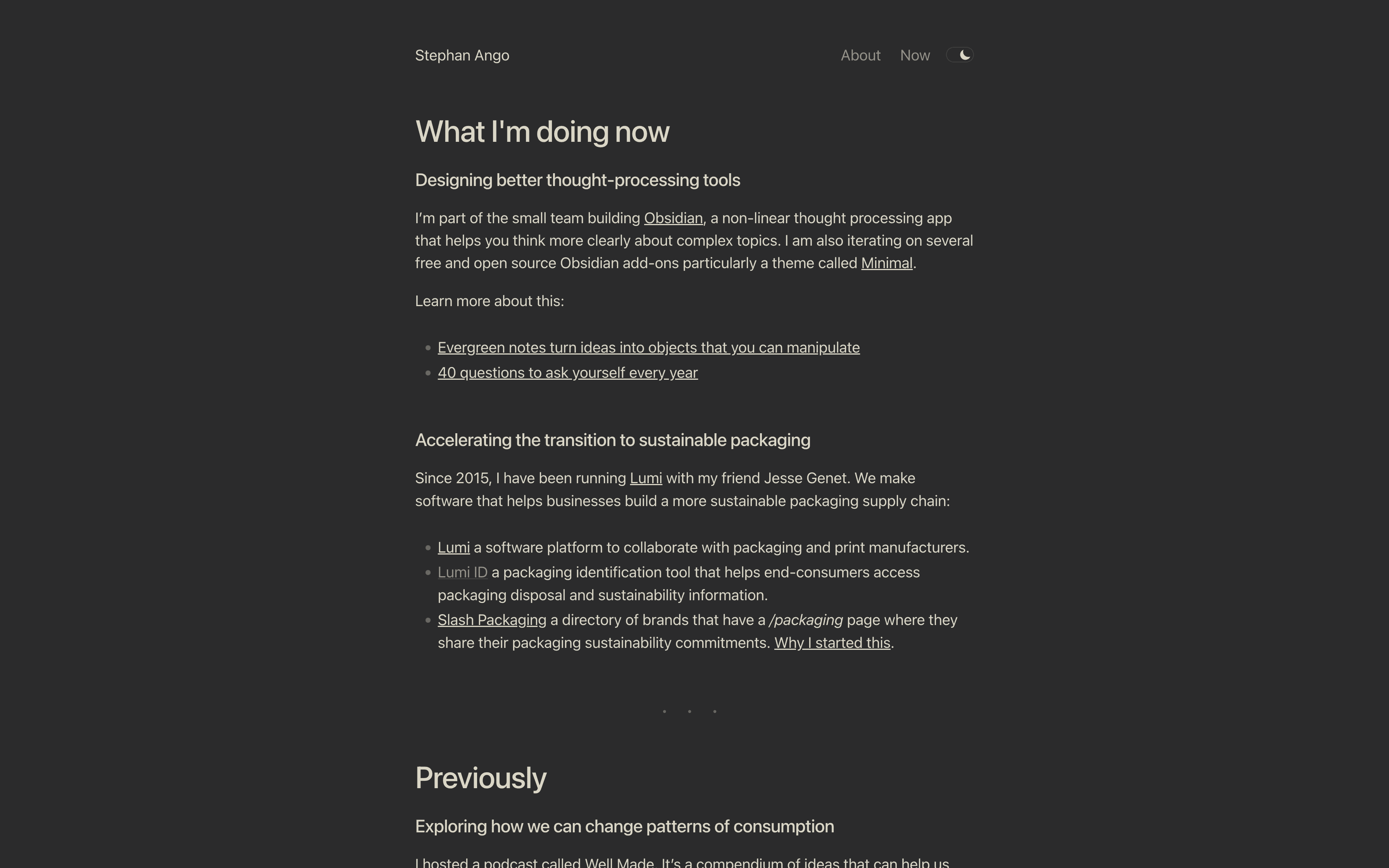 So, a website with a link that says "now" goes to a page that tells you what this person is focused on at this point in their life. For short, we call it a "now page".