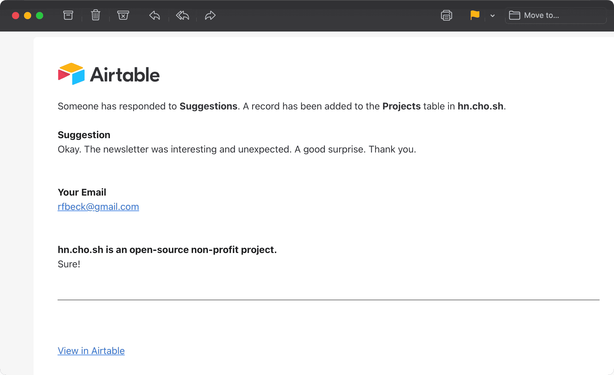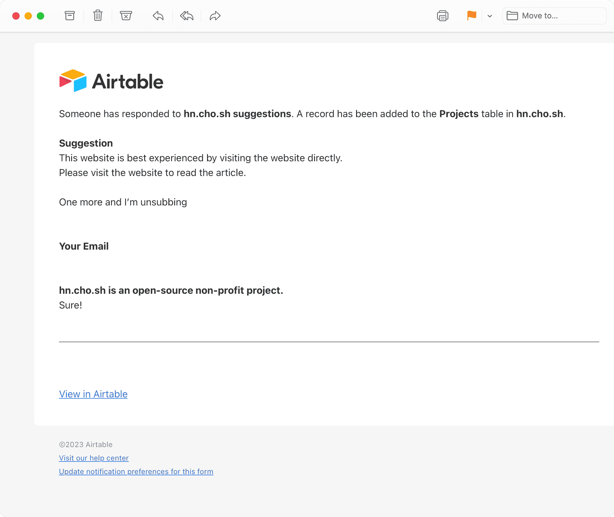 구독자들의 이메일을 보며 되게 다양한 회사가 있음을 느꼈다. 유럽에 기반한 Proton이라는 회사 및 덕덕고 이메일이 존재한다는 것도 이번에 알게 되었고, 이메일+tag 오퍼레이터를 사용해서 이메일을 정리하는 사람들, 본인의 도메인을 사용하는 인디 해커들, 일회용 이메일이나 RSS 피드 변환 앱 (Kill the Newsletter!)을 적극 활용하시는 분도 있으셨다. 인공지능 회사, 자율주행 회사, 블록체인 회사, VC, 웹툰 회사, 고전적 자산운용사, 그 뿐만 아니라 연예기획사와 은행, 출판사 분들도 있었다.