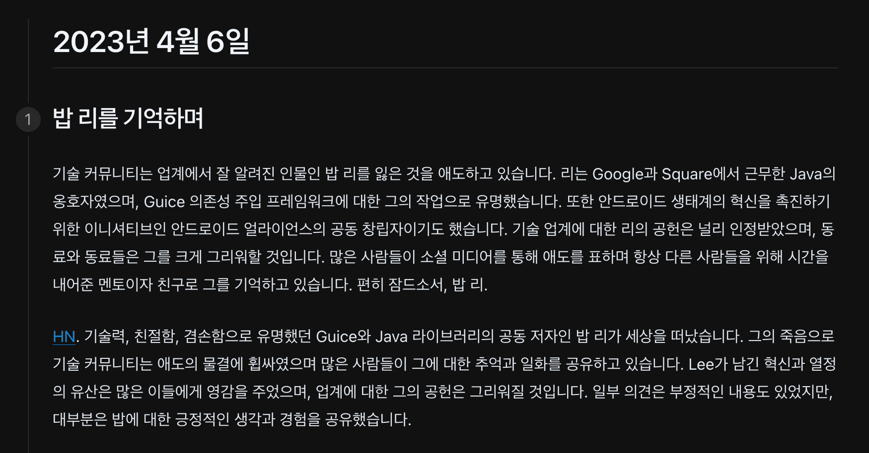 프롬프트를 조금 개선했더니 요약 품질이 많이 좋아졌다. 오늘거 좀 마음에 든다.