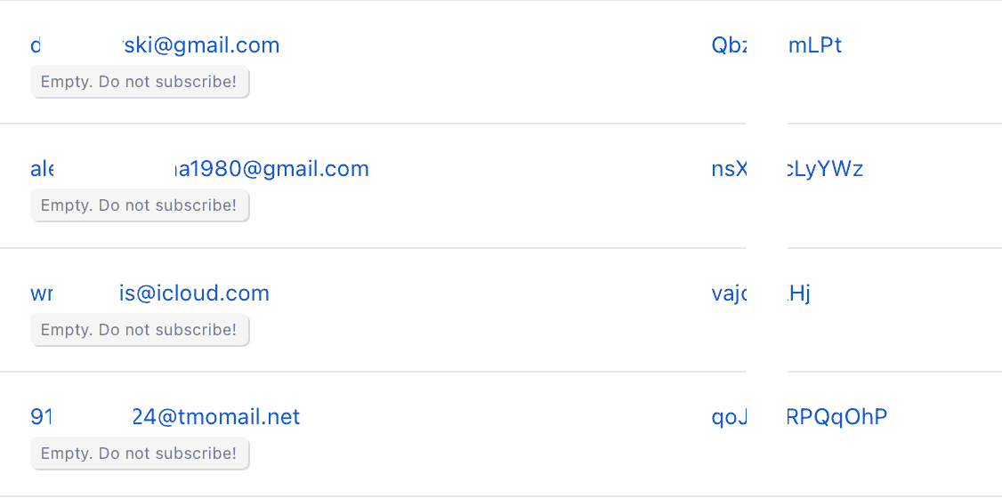 • So I tried adding an empty list and explicitly said "do not subscribe" on the list. Sure enough, a bunch of people still signed up. Look at these messes. Also, don't they look so authentic?